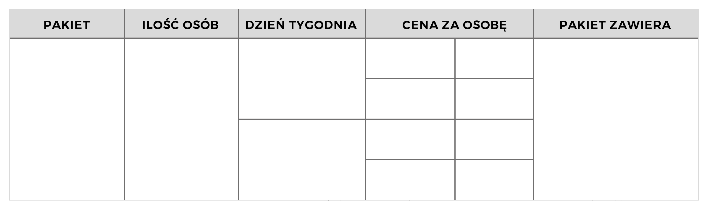*Przy grupach do 11 osób obsługa może łączyć pakiety kawalerskie z innymi grupami lub osobami indywidualnymi.