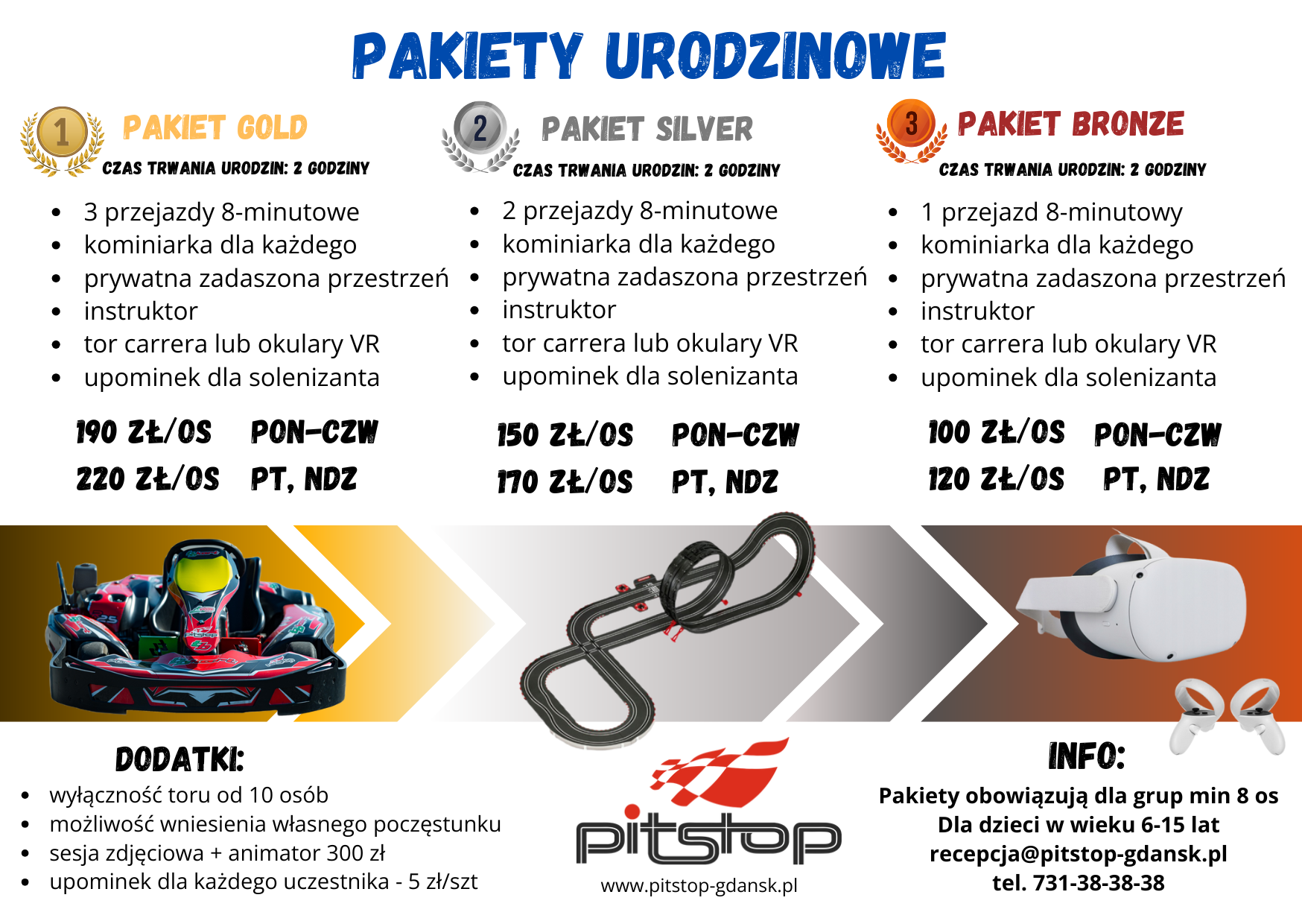 * każdy dodatkowy gokart na torze powyżej 12 szt to dodatkowo pn-czw 200zł/szt, pt-ndz 230zł/szt